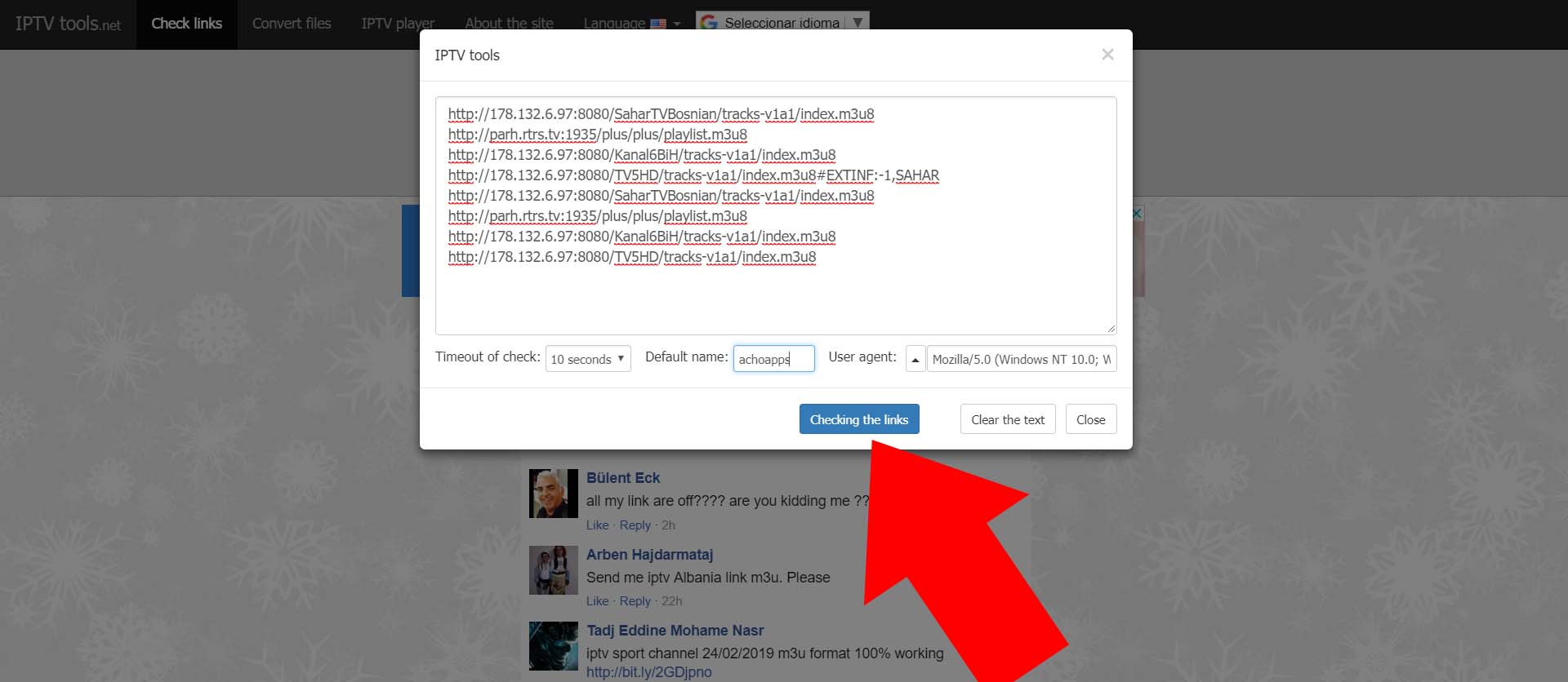 Una vez dentro en la web para chequear nuestra lista m3u tenemos que pinchar en el botón señalado para poner los links.